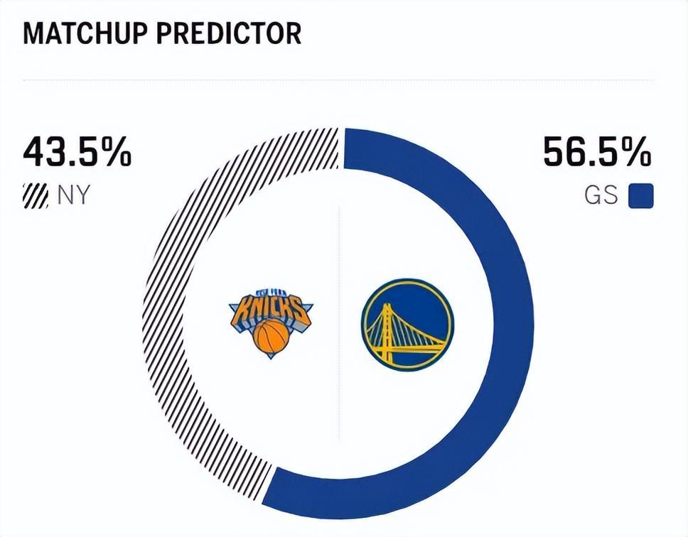 这场比赛不仅是东西部球队之间的较量,更是两队巩固排名的关键战役。赛前,美媒ESPN对本场比赛进行了胜率预测,尼克斯的胜率意外仅有43.5%,劣势明显,勇士队的胜率则高达56.5%。